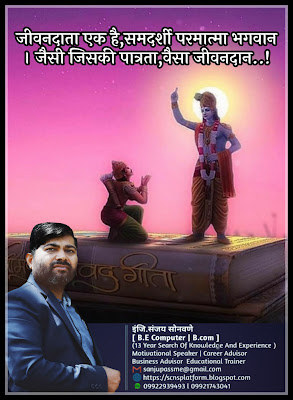 उपरोक्त ज्ञान एवं अनुभव को व्यवहार में लाकर बेहतर एवं उज्ज्वल सफलता की ओर बढ़ने का विनम्र निवेदन है... इंजि.संजय सोनवणे |
